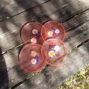 Pink Floral Resin Coaster Set